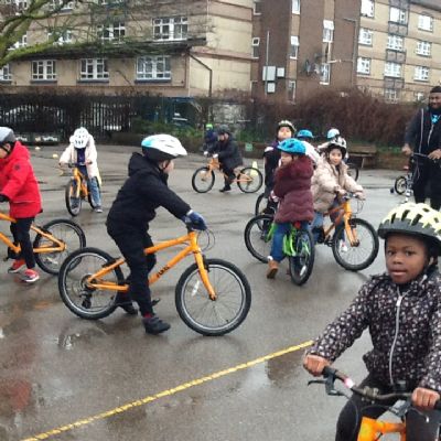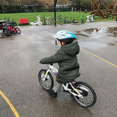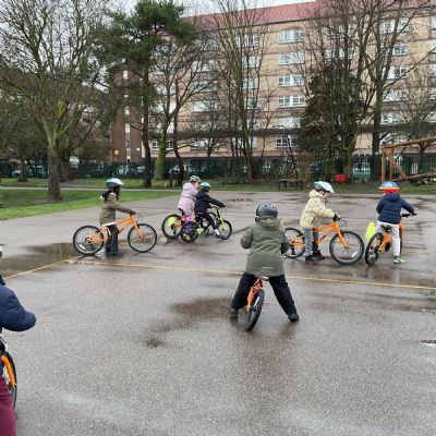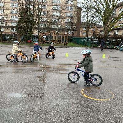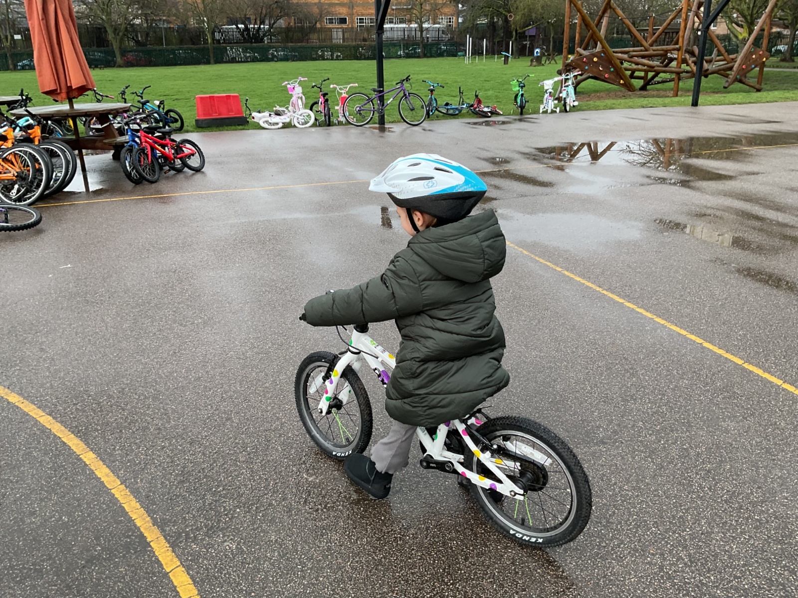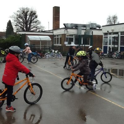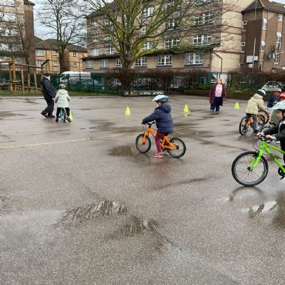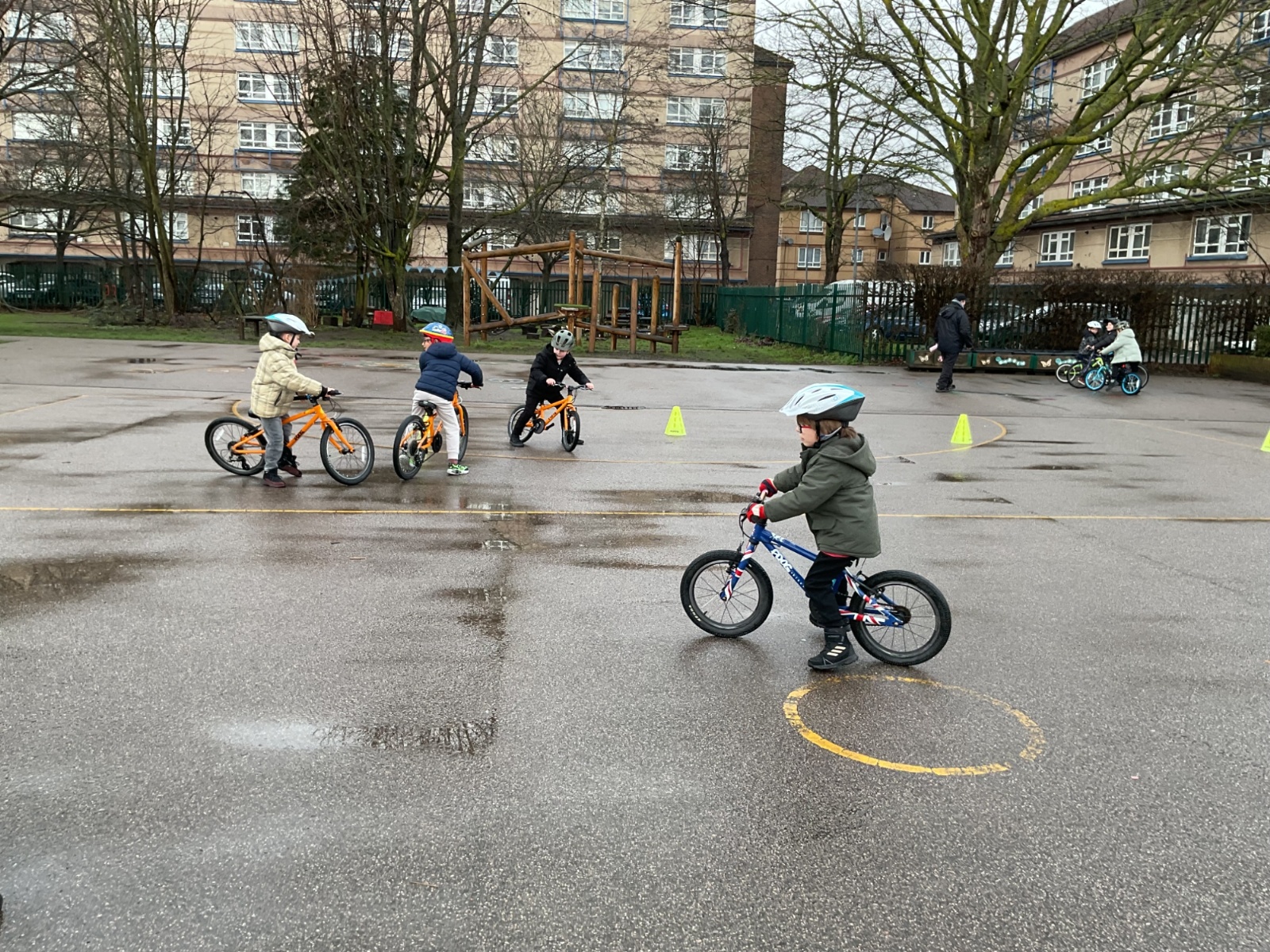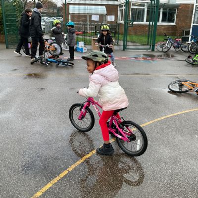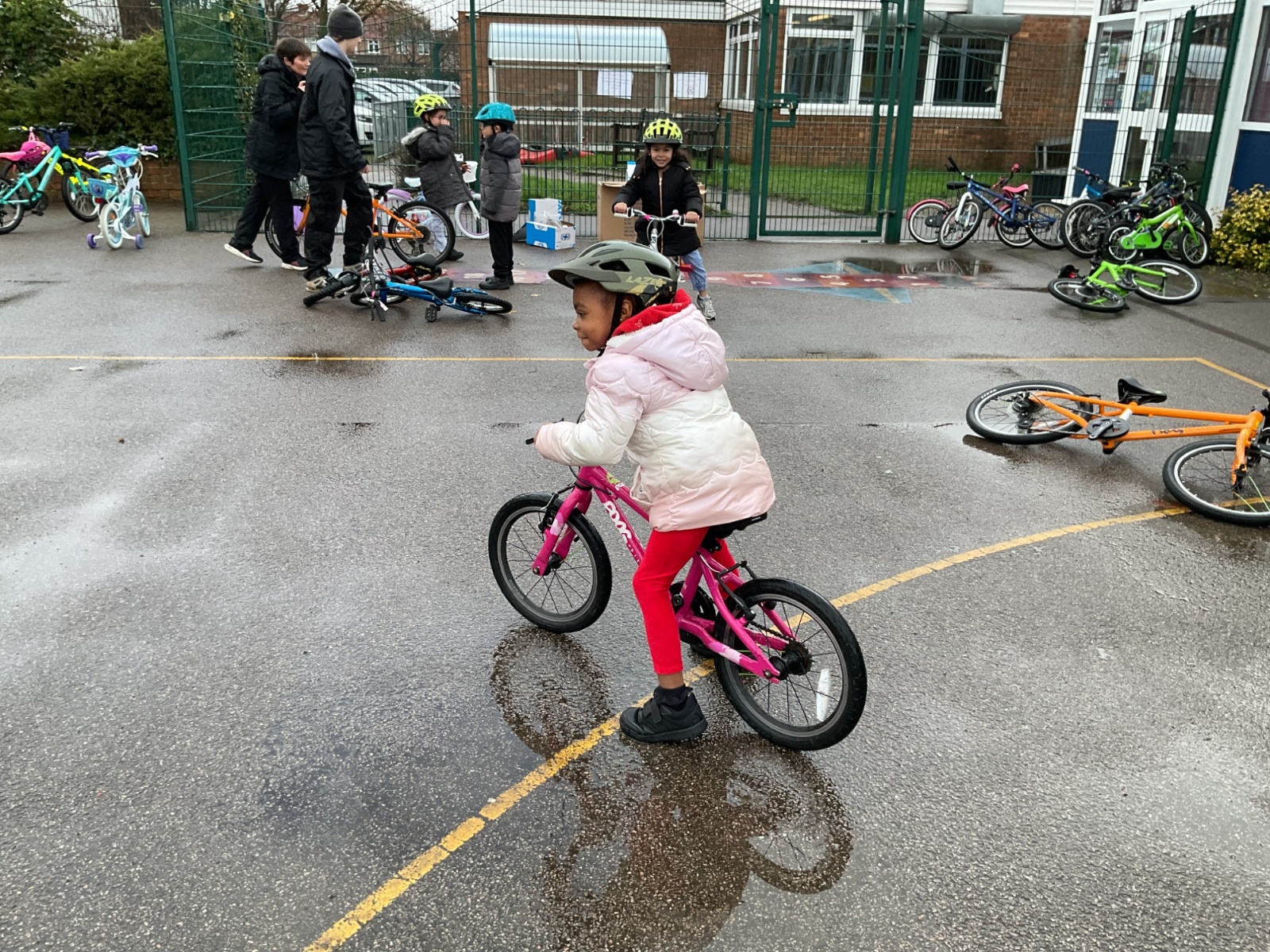 Children from Year 1 to Year 3 practised riding their bikes in the playground.